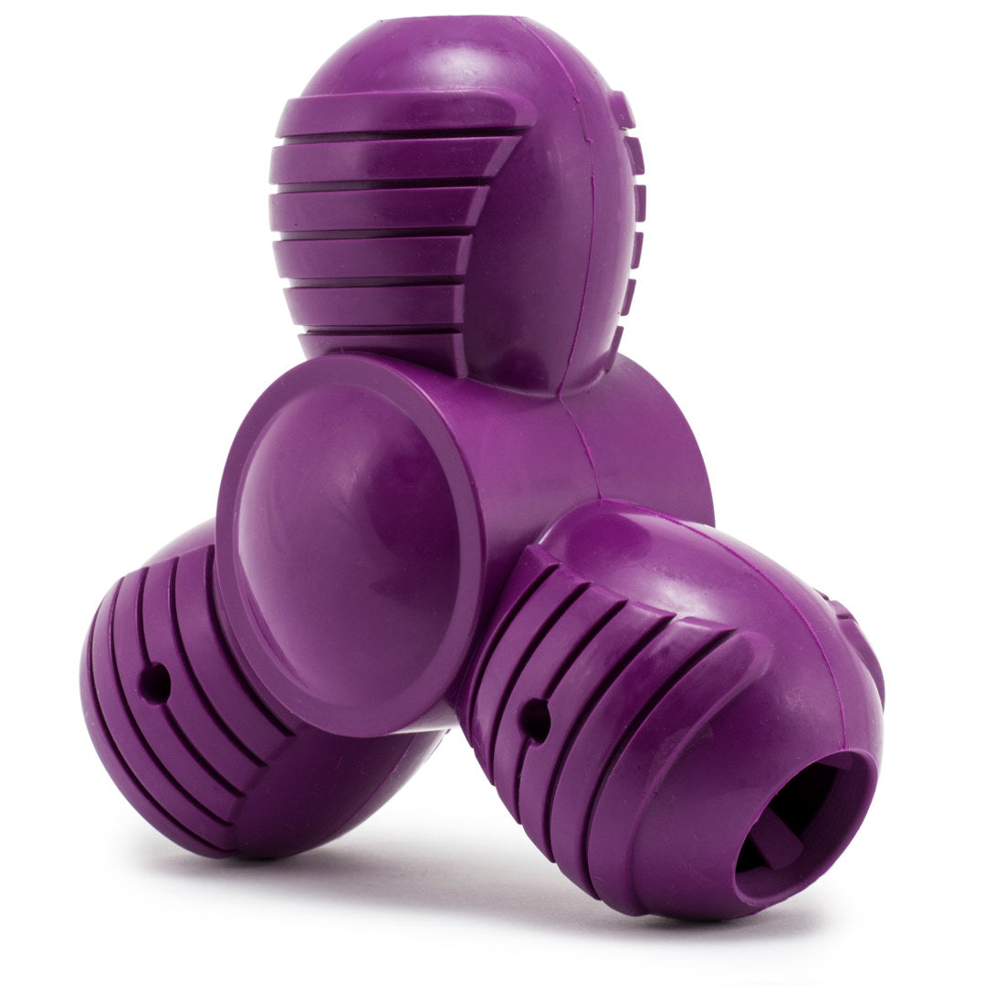 Let your dog enjoy the first treat-dispensing toy that also squeaks! With 2 separate treat-dispensing chambers and a squeaker, the toy will keep dogs engaged in positive playtime for a long time. As your dog plays with the toy, treats or food randomly pop out. The built-in reward keeps dogs actively engaged, redirecting potentially destructive chewing behaviour. The squeak adds to the excitement. Trim the patented Treat Meter™ prongs to increase the rate at which the treats come out Once the prongs are cut, there's no going back, so we recommend trimming only a little at a time and testing the result.