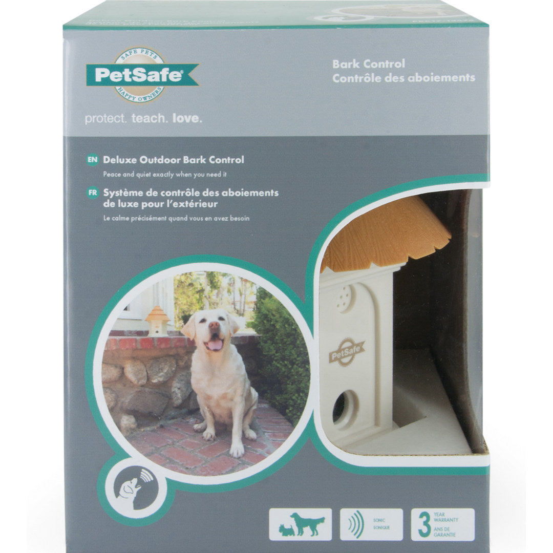 • Outdoor Bark Control - Disguised as a birdhouse, the unit emits an ultrasonic tone when your dog barks that can be annoying to your dog but is silent to most humans