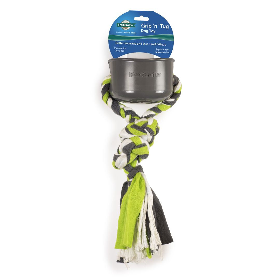The PetSafe® Grip ‘n’ Tug provides you and your dog with a safe yet satisfying tugging experience. Winner of the 2018 PATS Sandown New Product Showcase Award for Dog Accessory Products, this innovative toy features a tugging handle to help you gain better leverage with less hand fatigue. The provided durable fleece tug is approximately 74 cm in length and braided with rope to provide a durable and long-lasting tug toy. Perfect for dogs of nearly any size, the tug can be easily removed from the handle for cleaning or replacement. PetSafe Replacement Tugs are available separately in two styles so each dog can have his own tug, or so soiled tugs can be replaced with fresh ones. The tugs are washing machine safe and are quick to line dry. The PetSafe® Grip ‘n’ Tug also comes with tugging tips written by certified staff trainers. PetSafe® brand is here to help you and your pet live happy together™.