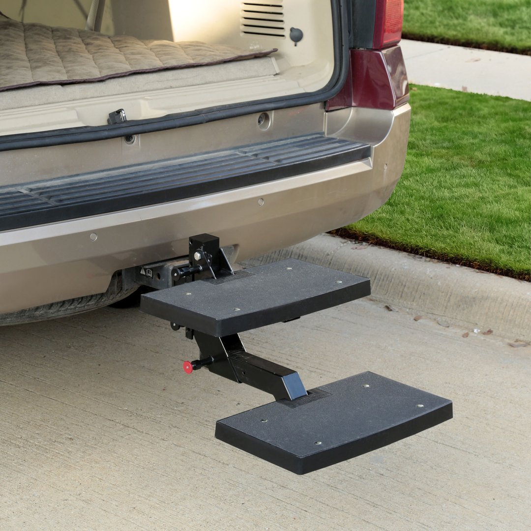 - The HitchSTEP installs in any 5 cm vehicle hitch receiver and can be adjusted to fit the heights of different vehicles, including pickup trucks when the necessary adaptor is used (sold separately). An adaptor for 3 cm hitch receivers is also sold separately.