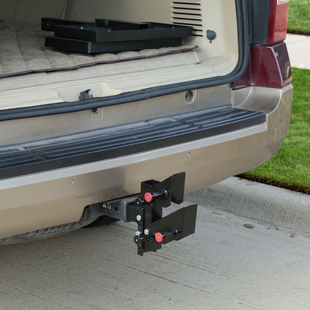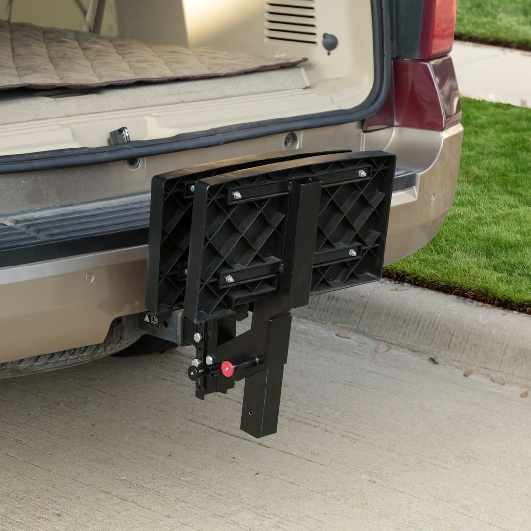 Taking your big dog along for the ride has never been easier! The innovative HitchSTEP is the perfect solution for pet parents who want an alternative to ramps for helping their oh-so-heavy pups access the back of the vehicle. The patent-pending, two-step design makes it easy for pets to climb up and down, and even easier for you to swivel it up and out of the way when not in use.