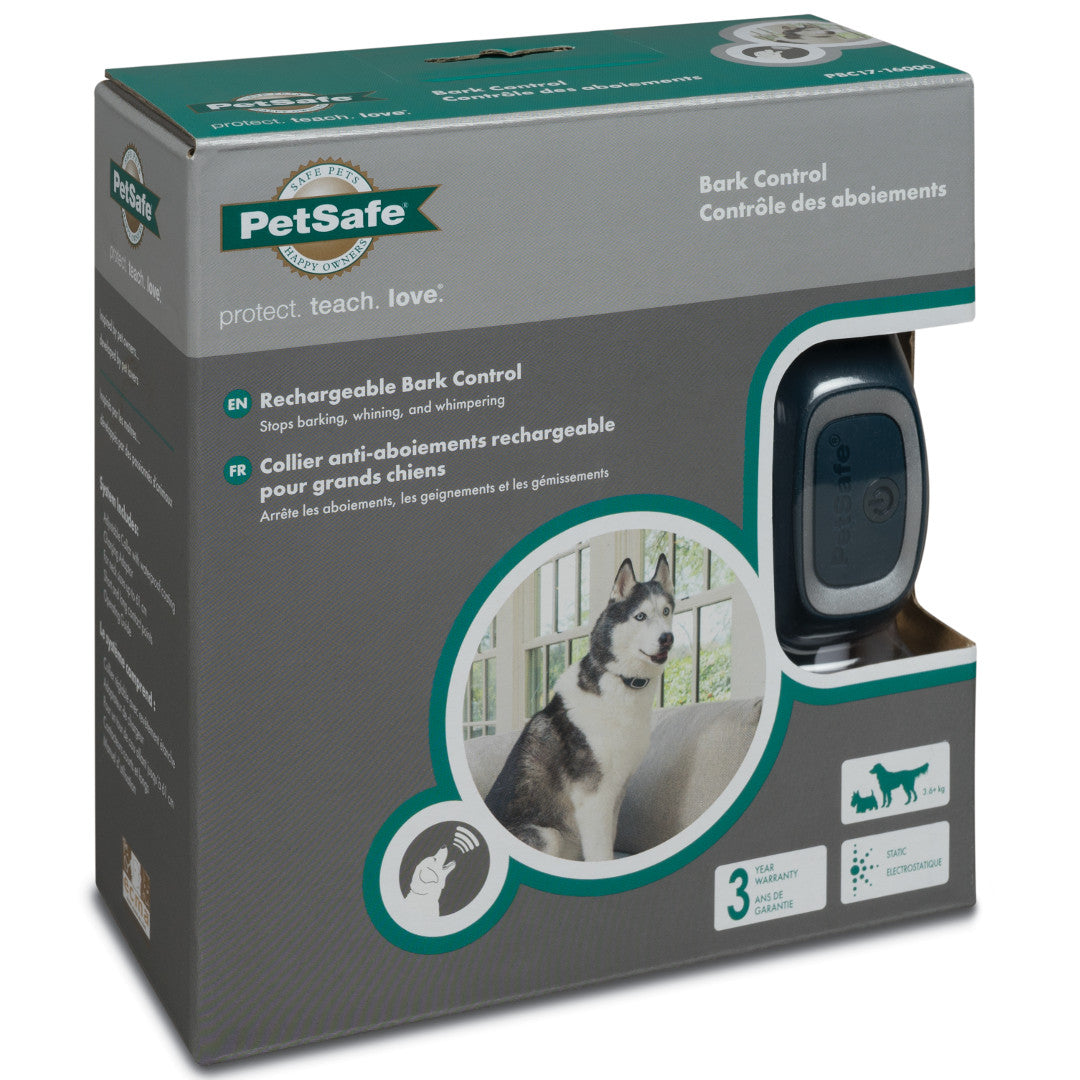 The PetSafe® Rechargeable Bark Control collar uses several features designed to shorten the training phase and promote good behaviour. The bark control collar has a unique sensor that provides the most reliable bark detection available. It also uses temperament learning to decrease and in most cases eliminate nuisance barking.