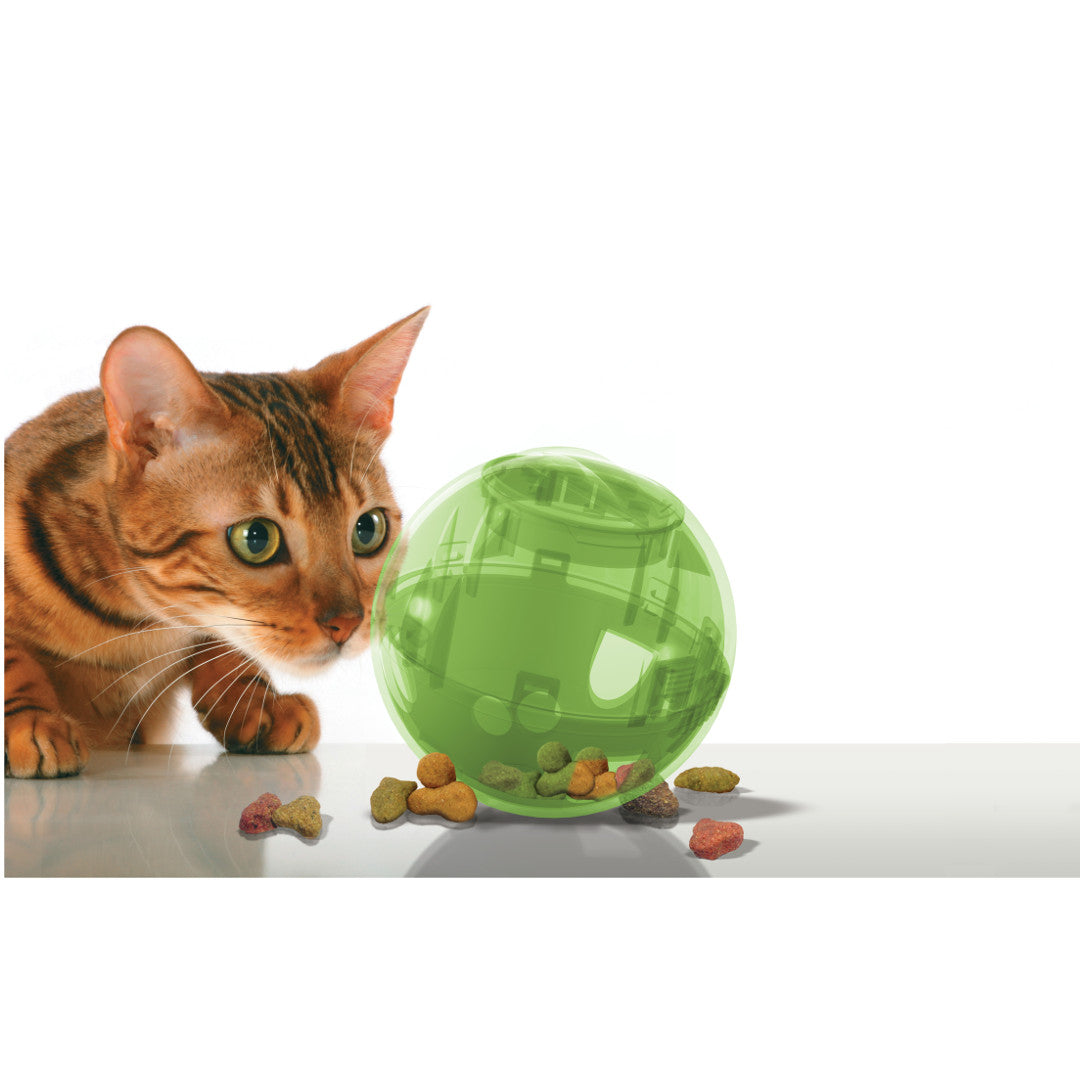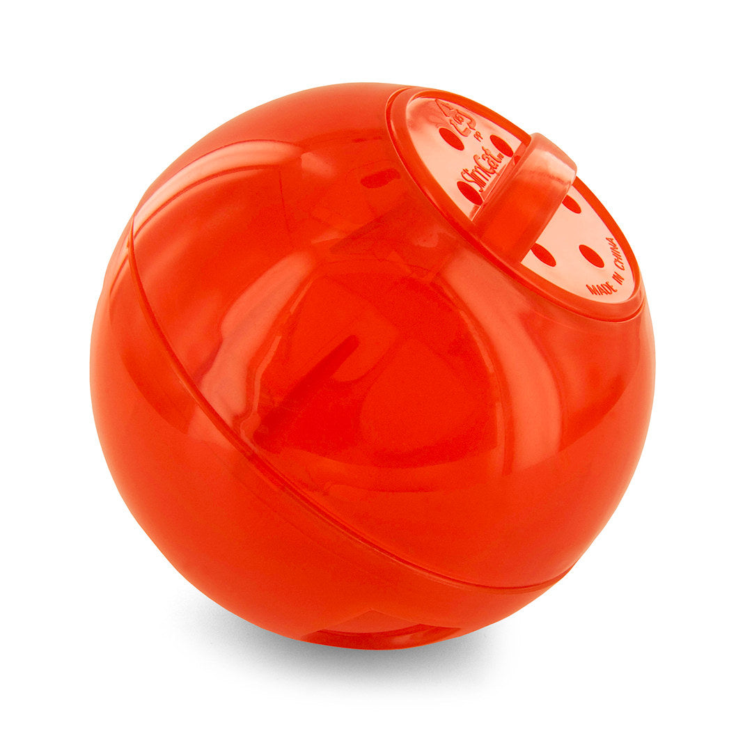 About 50% of cats show signs of obesity. SlimCat™ Cat Toy is an interactive feeding ball that gives your cat portion control and exercise. The SlimCat™ toy increases feline activity, decreases excessive eating and improves behavioural problems associated with boredom such as excessive meowing, scratching or aggression. The toy distributes an adjustable amount of dry food as your cat plays with it. By providing smaller portions of food throughout the day, it helps to maintain optimum weight as well as improve your cat's digestion. It's great for cats of all sizes, especially overweight cats. Fill with a healthy portion of dry food and watch your cat shape up on his own!